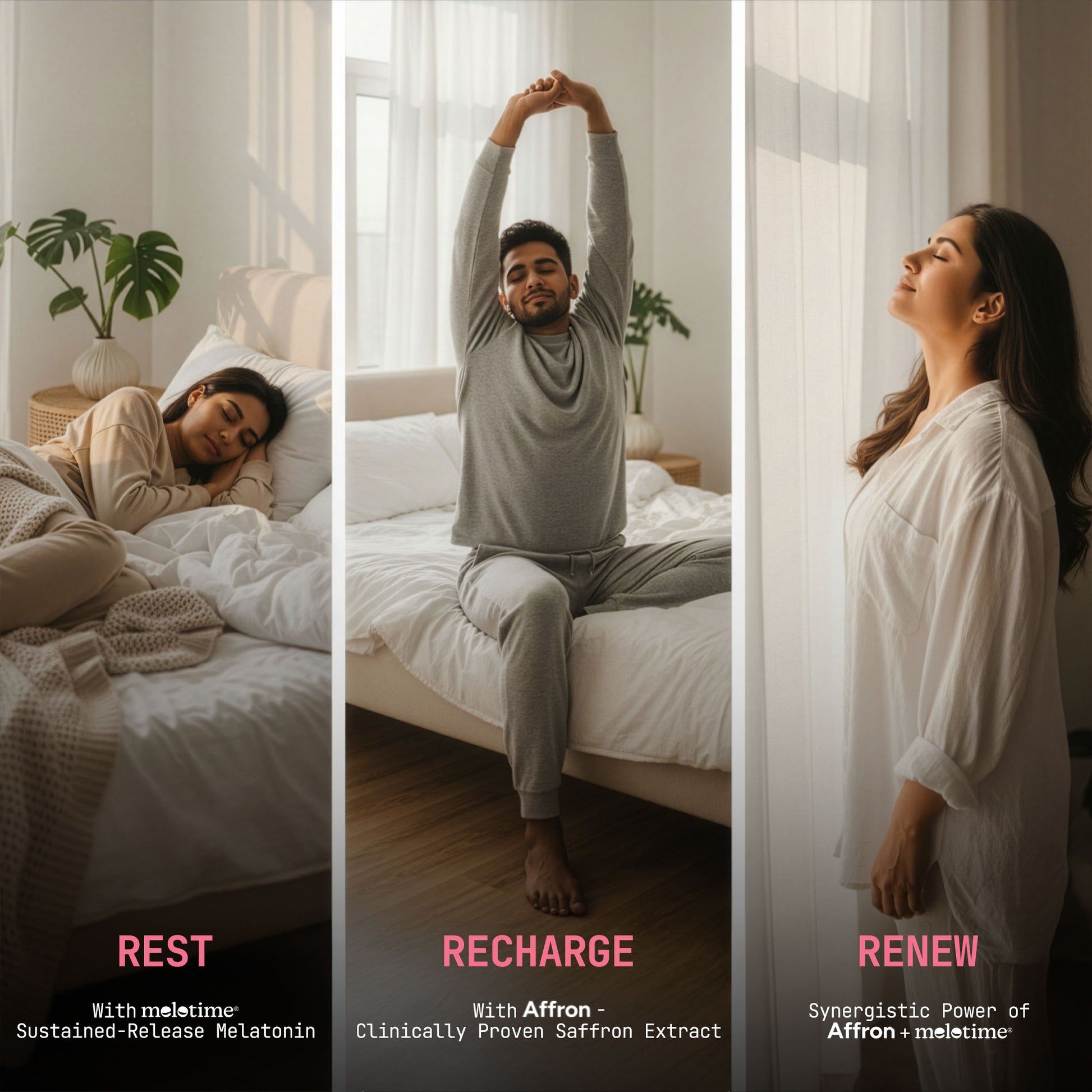 This formula combines 3 mg of Melotime™ SR with 14 mg of Affron . The Sustained Release technology is the main differentiator, ensuring the Melatonin is delivered over several hours, crucial for maintaining sleep. Affron works synergistically by helping to improve sleep quality and promoting better mood balance.